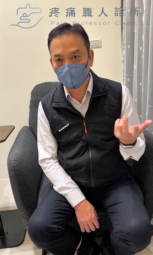 柯先生:「五十肩疼痛的狀況從去年十二月開始快一年了,做過很多治療,中醫推拿、復健PRP都沒效…;印象很深刻,治療後我手的恢復、睡眠品質都變好了,如果有疼痛問題,嘗試過治療復健無效,可以來找徐醫師」