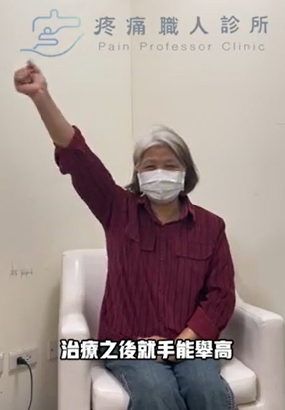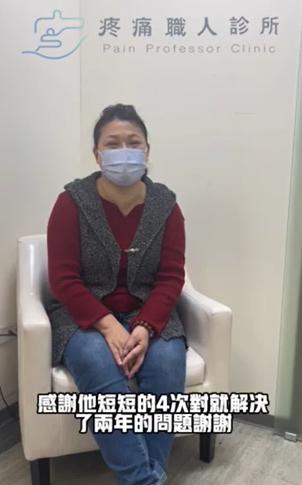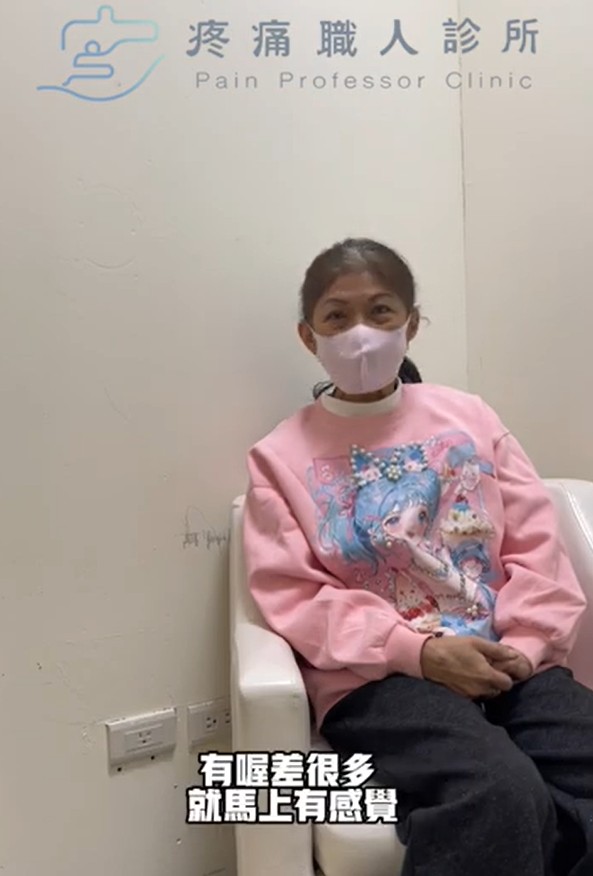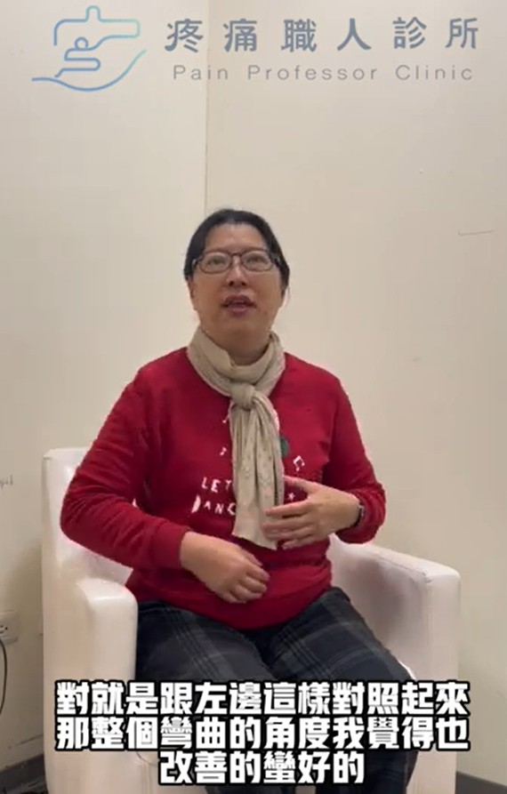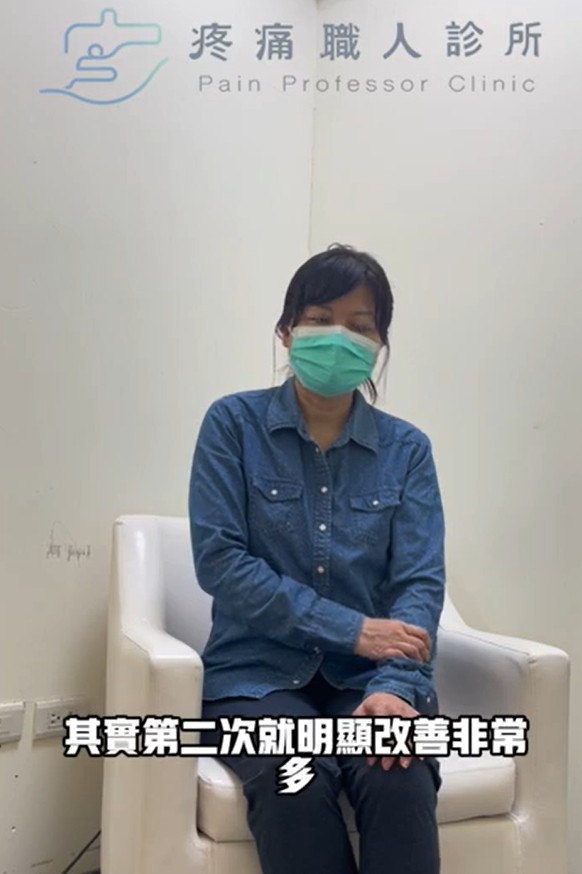 [影片]黃小姐: 看了好幾個醫生之前做過復健、藥物、注射都沒改看;第一次處理完改善的滿好的