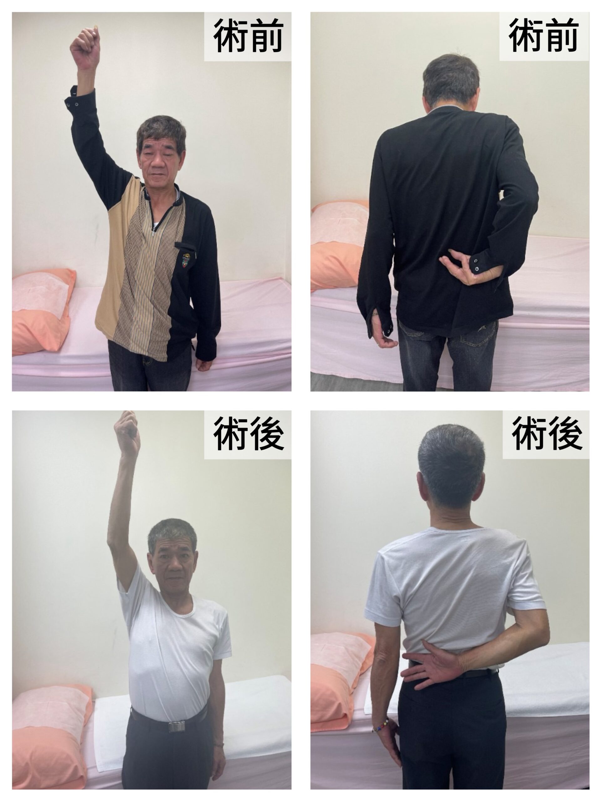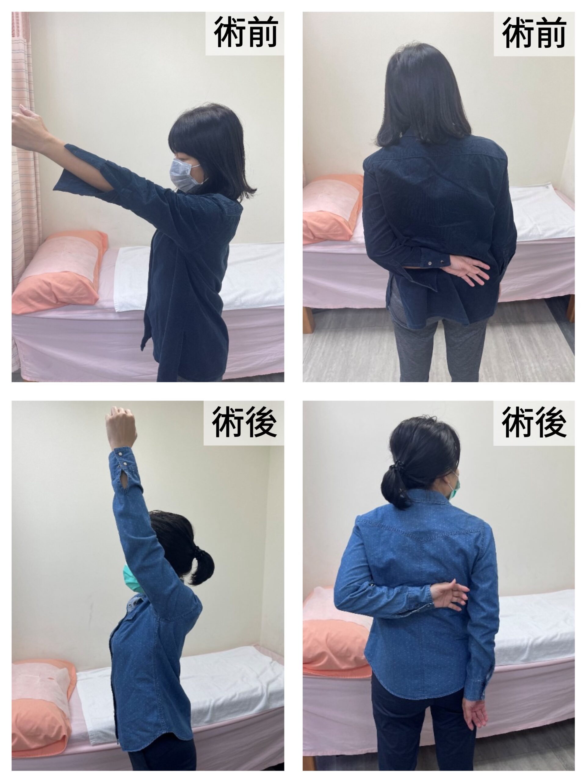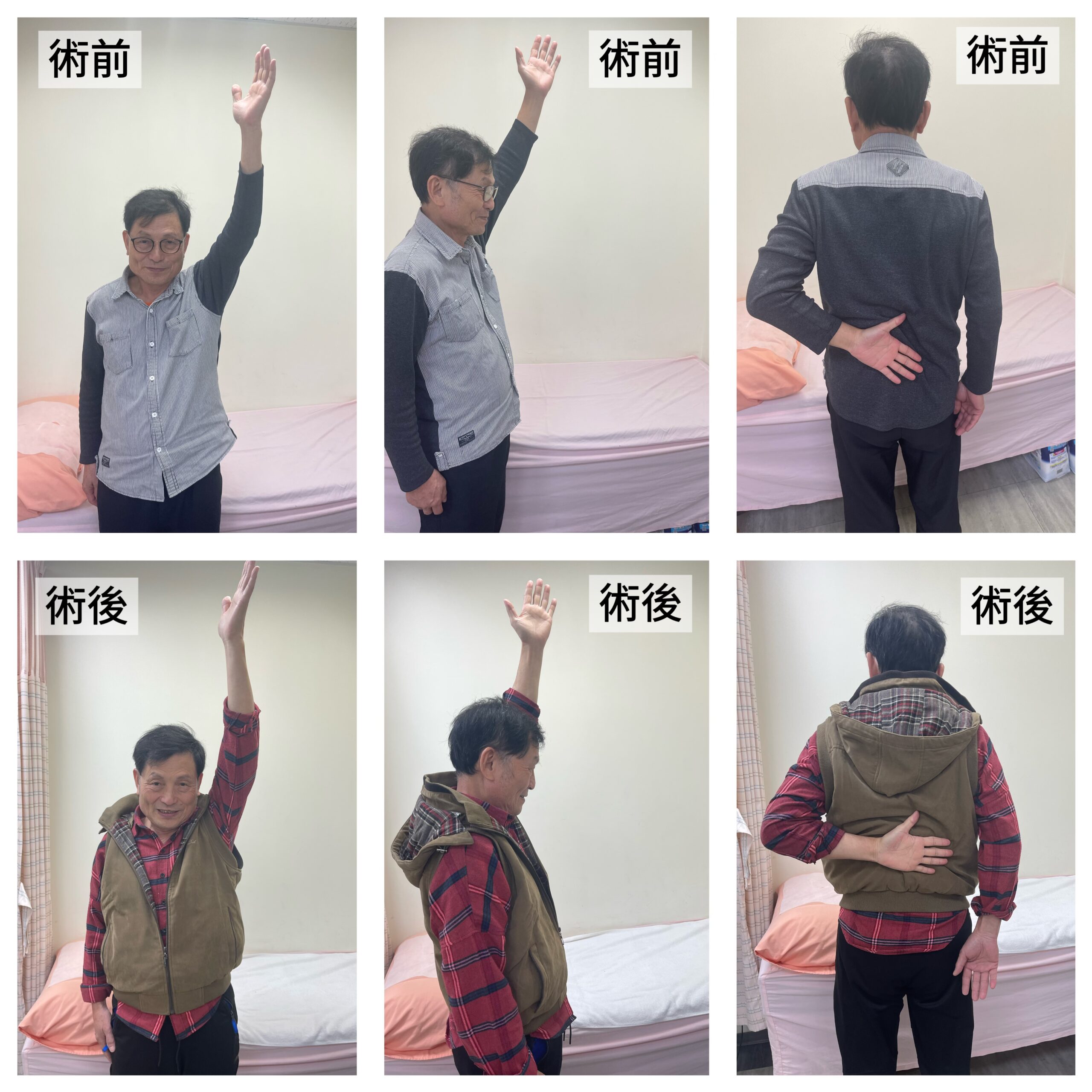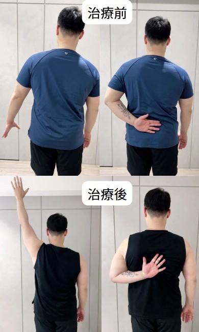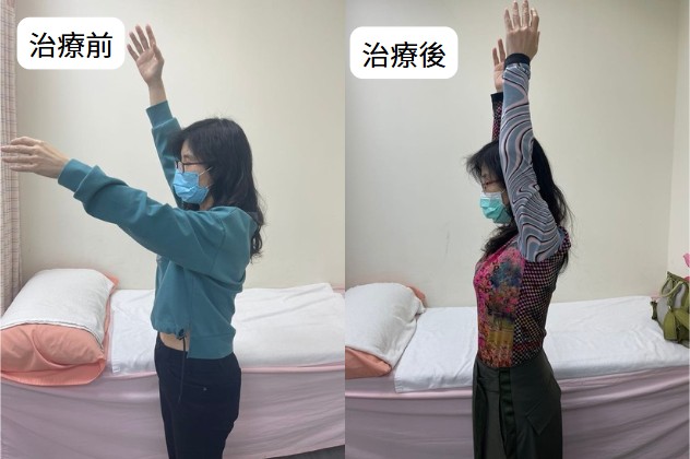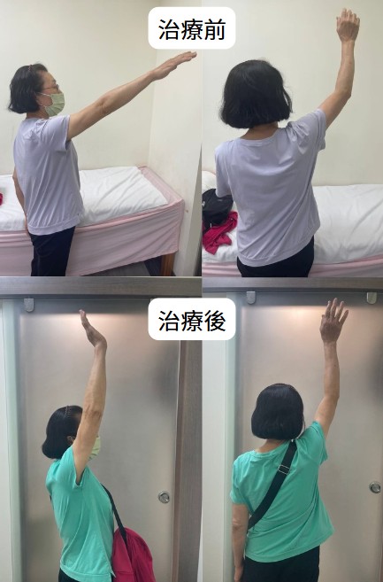 差不多半年左右,50肩接受過中醫、推拿,越推越嚴重;第一次治療後手臂好很多