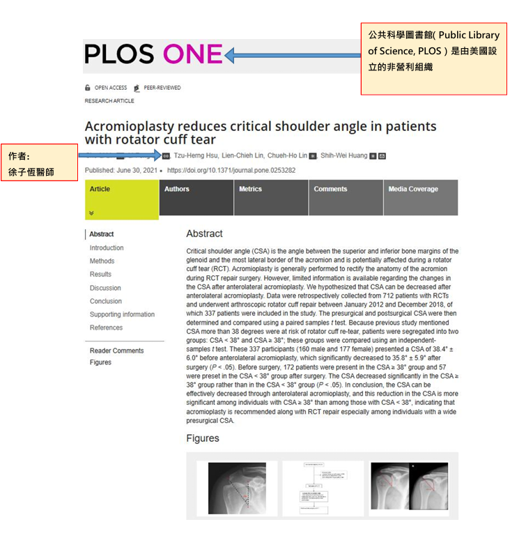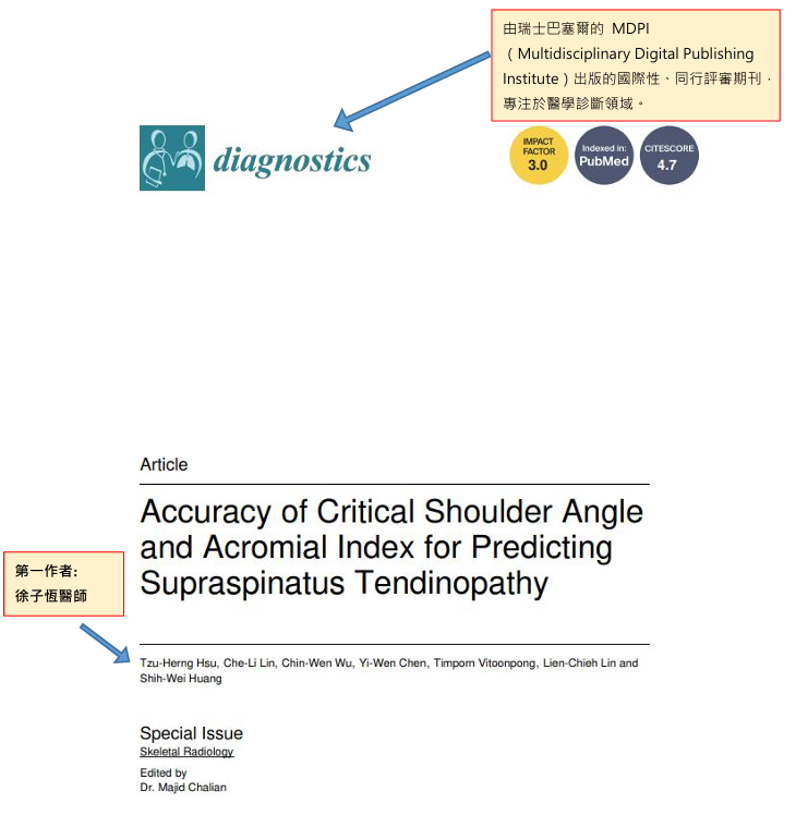 徐子恆醫師研究發表-肩峰成形術可降低旋轉肌腱撕裂患者的CSA(關鍵肩角)