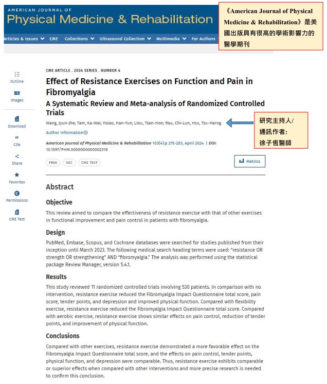 徐子恆醫師研究發表-擺脫疼痛!阻力運動如何改善纖維肌痛患者的生活品質?