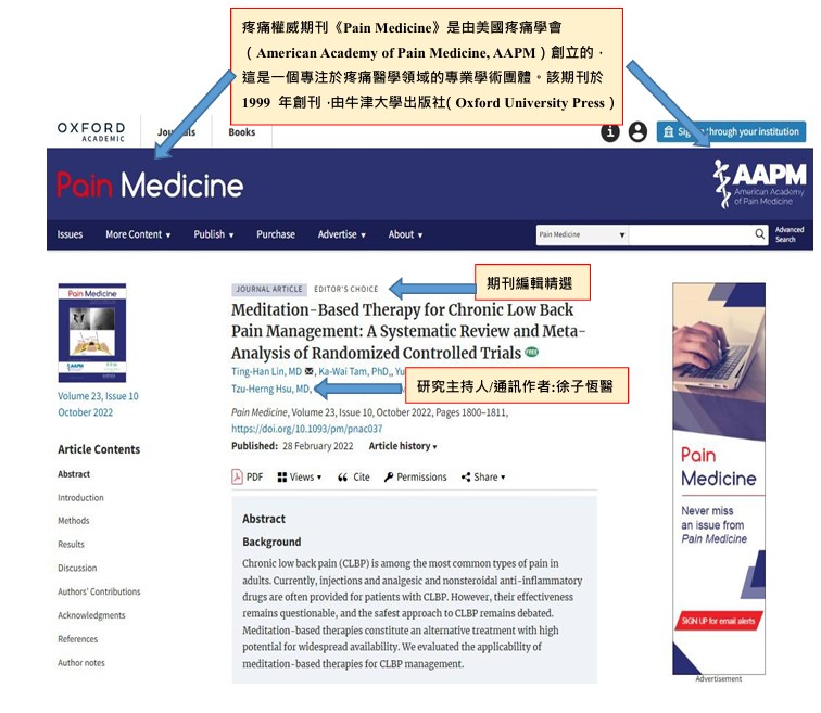 徐子恆醫師研究發表-冥想療法如何幫助改善慢性下背痛?