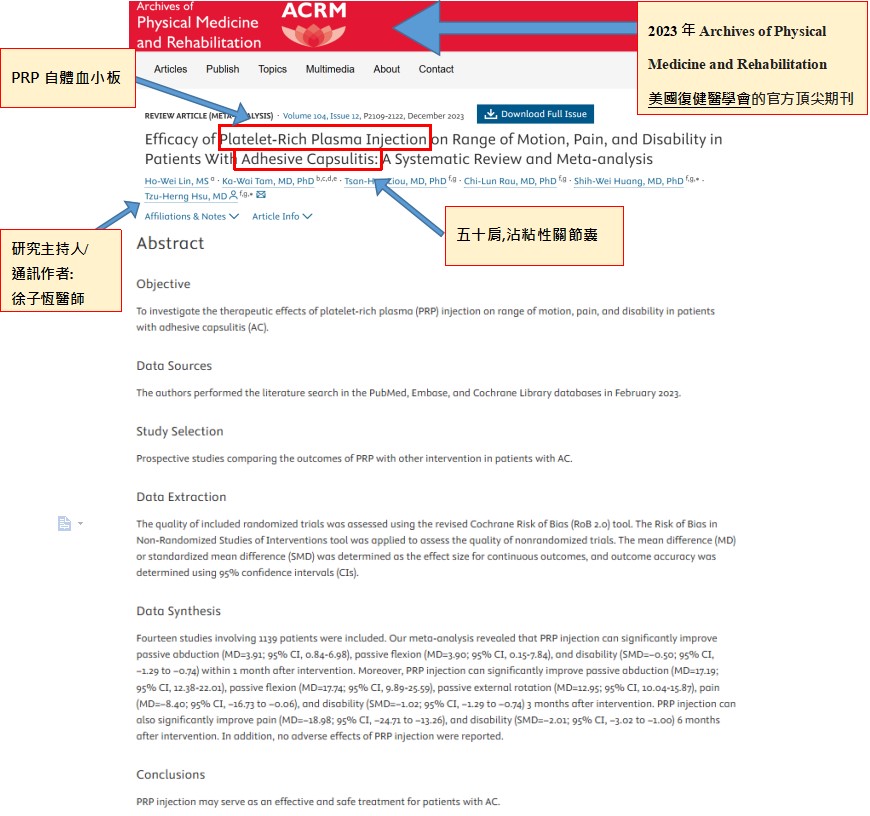 徐子恆醫師研究發表-PRP治療五十肩有效嗎?