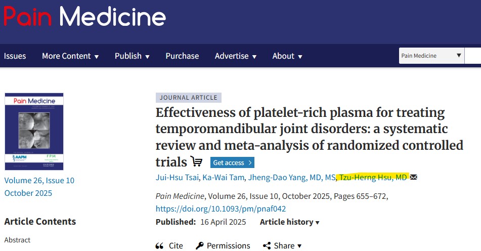徐子恆醫師研究發表-PRP治療顳顎關節問題有效嗎?