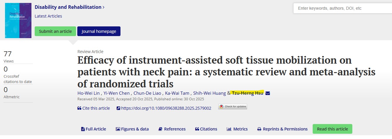 徐子恆醫師研究發表-筋膜刀使用於頸部疼痛的治療效果