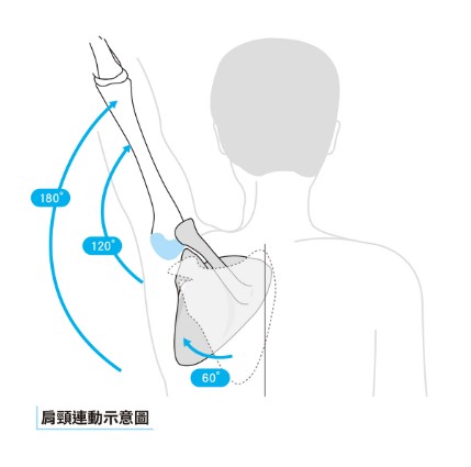 肩胛骨是肩關節的「基座」,正常情況下,手臂抬高時,肩胛骨也需要在胸廓上旋轉、提升,才能讓肩關節達到完整的舉手動作。如果肩胛骨卡住了(例如長期姿勢不良造成肩胛骨動作受限),肩關節單獨的活動就達不到應有的高度。