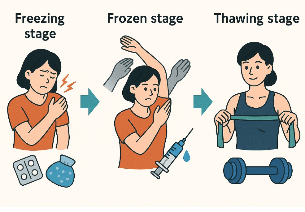 治療建議: 伸展運動、徒手鬆動、震波、PRP注射或關節囊擴張,必要時麻醉下鬆動術。